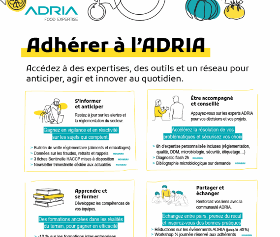 Les exigences en qualité et sécurité des aliments se renforcent. Votre adhésion ADRIA vous donne accès à des services conçus pour vous aider à rester à jour, décider plus vite et sécuriser vos choix. Dès votre adhésion, vous activez des…